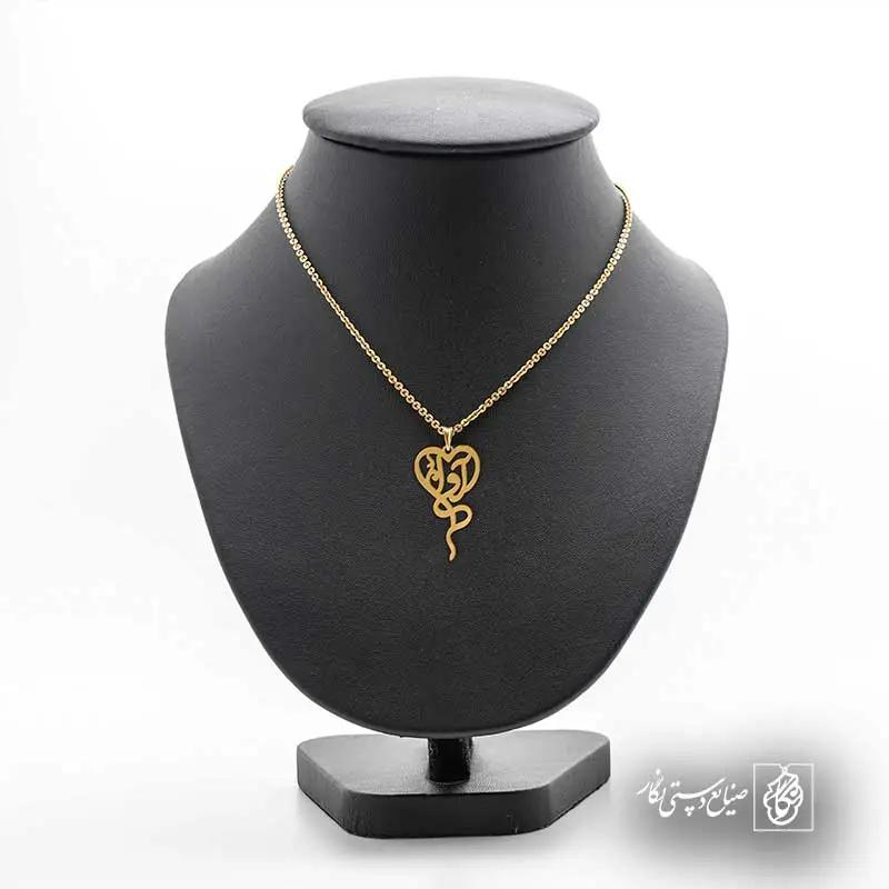 گردنبند اسم آوا کد 5715 از جنس استیل ضدزنگ و ضد حساسیت با رنگ ثابت توسط زیورآلات نگار طراحی و ساخته شده است. این گردنبند با ضخامت 1 میلیمتر در ابعاد 2.5 تا 4 سانتیمتر نسبت به سفارش مشتری قابل ساخت است. تمام محصولات در فروشگاه زیورآلات نگار بعد از خرید ساخته میشود و بین 7 تا 15 روز به دست شما مشتریان گرامی میرسد.