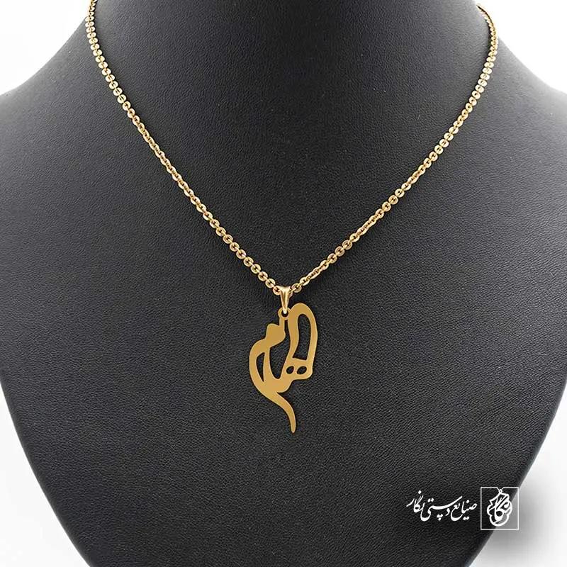 گردنبند اسم الهام کد 5739 از جنس استیل ضدزنگ و ضد حساسیت با رنگ ثابت توسط زیورآلات نگار طراحی و ساخته شده است. این گردنبند با ضخامت 1 میلیمتر در ابعاد 2.5 تا 4 سانتیمتر نسبت به سفارش مشتری قابل ساخت است. تمام محصولات در فروشگاه زیورآلات نگار بعد از خرید ساخته میشود و بین 7 تا 15 روز به دست شما مشتریان گرامی میرسد.