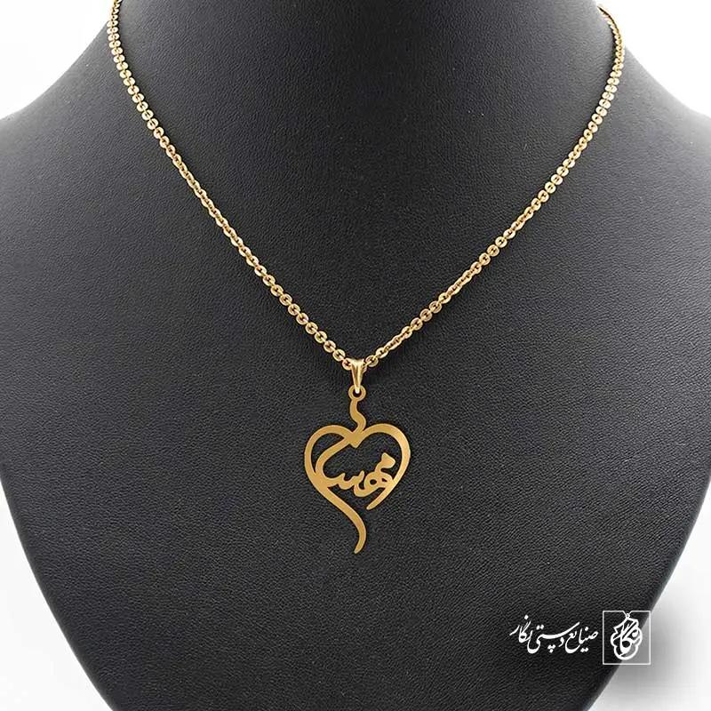 گردنبند اسم مهسا کد 5837 از جنس استیل ضدزنگ و ضد حساسیت با رنگ ثابت توسط زیورآلات نگار طراحی و ساخته شده است. این گردنبند با ضخامت 1 میلیمتر در ابعاد 2.5 تا 4 سانتیمتر نسبت به سفارش مشتری قابل ساخت است. تمام محصولات در فروشگاه زیورآلات نگار بعد از خرید ساخته میشود و بین 7 تا 15 روز به دست شما مشتریان گرامی میرسد.