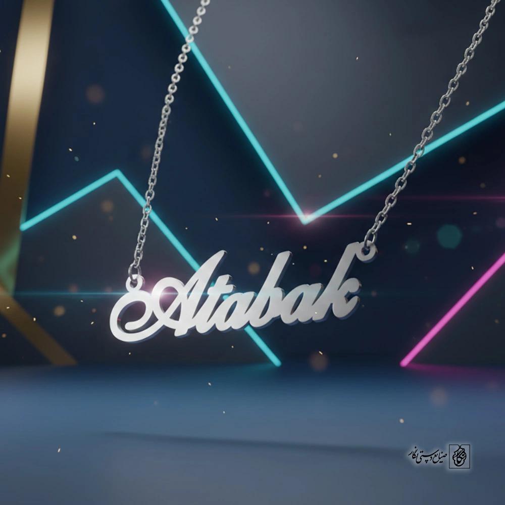 گردنبند اسم آتابک کد 30024 از جنس استیل ضدزنگ و ضد حساسیت با رنگ ثابت توسط زیورآلات نگار طراحی و ساخته شده است. این گردنبند با ضخامت 1 میلیمتر در ابعاد 2.5 تا 4 سانتیمتر نسبت به سفارش مشتری قابل ساخت است. تمام محصولات در فروشگاه زیورآلات نگار بعد از خرید ساخته خواهد شد و بین 7 تا 15 روز به دست مشتریان گرامی خواهد رسید.