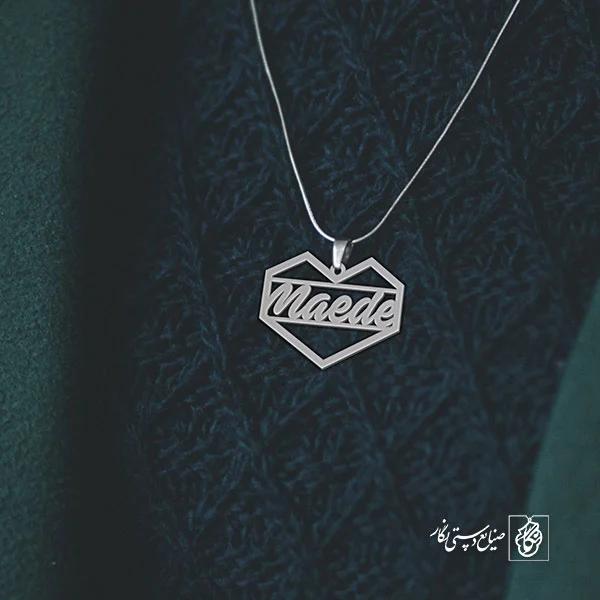 گردنبند اسم Maede کد 1700 از جنس استیل ضدزنگ و ضد حساسیت با رنگ ثابت توسط زیورآلات نگار طراحی و ساخته شده است. این گردنبند با ضخامت 1 میلیمتر در ابعاد 2.5 تا 4 سانتیمتر نسبت به سفارش مشتری قابل ساخت است. تمام محصولات در فروشگاه زیورآلات نگار بعد از خرید ساخته خواهد شد و بین 7 تا 15 روز به دست مشتریان گرامی خواهد رسید.