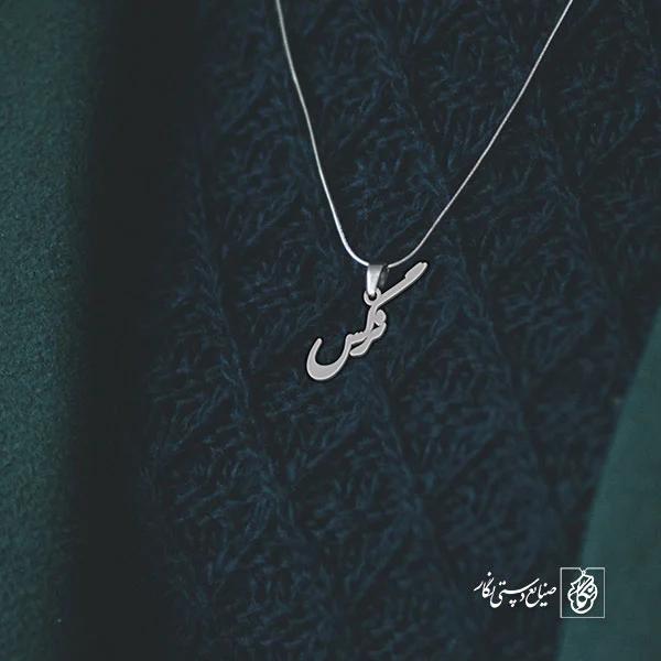 گردنبند اسم نرگس کد 2424 از جنس استیل ضدزنگ  و ضد حساسیت با رنگ ثابت توسط زیورآلات نگار طراحی و ساخته شده است. این گردنبند با ضخامت 1 میلیمتر در ابعاد 2.5 تا 4 سانتیمتر نسبت به سفارش مشتری قابل ساخت است. تمام محصولات در فروشگاه زیورآلات نگار بعد از خرید ساخته خواهد شد و بین 7 تا 15 روز به دست مشتریان گرامی خواهد رسید.