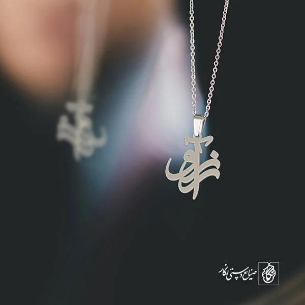 گردنبند اسم آرزو کد 2730 از جنس استیل ضدزنگ و ضد حساسیت با رنگ ثابت توسط زیورآلات نگار طراحی و ساخته شده است. این گردنبند با ضخامت 1 میلیمتر در ابعاد 2.5 تا 4 سانتیمتر نسبت به سفارش مشتری قابل ساخت است. تمام محصولات در فروشگاه زیورآلات نگار بعد از خرید ساخته خواهد شد و بین 7 تا 15 روز به دست مشتریان گرامی خواهد رسید.