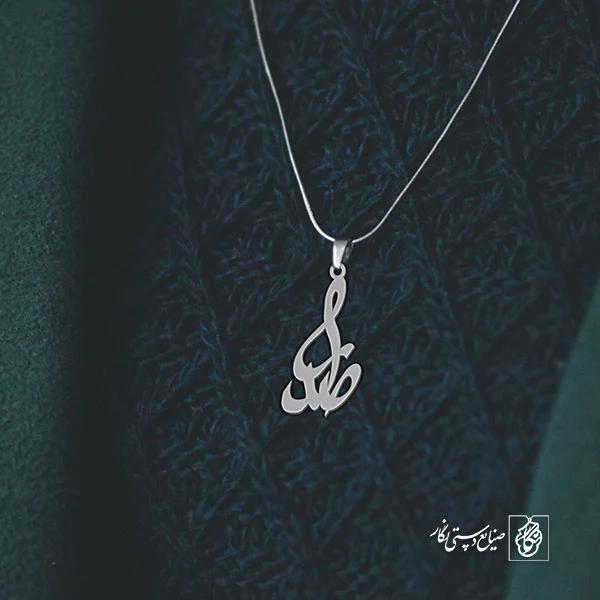 گردنبند صدرا کد 3040 از جنس استیل ضدزنگ و ضد حساسیت با رنگ ثابت توسط زیورآلات نگار طراحی و ساخته شده است. این گردنبند با ضخامت 1 میلیمتر در ابعاد 2.5 تا 4 سانتیمتر نسبت به سفارش مشتری قابل ساخت است.