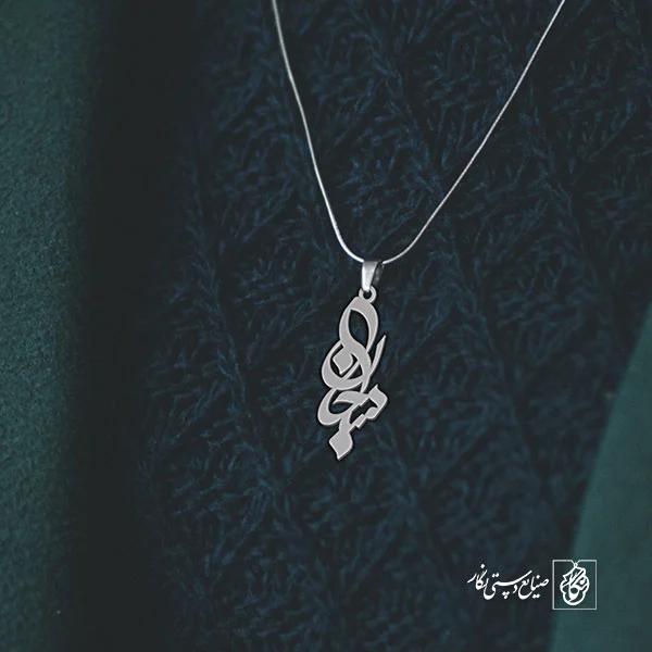 گردنبند اسم سبحان کد 3127 از جنس استیل ضدزنگ و ضد حساسیت با رنگ ثابت توسط زیورآلات نگار طراحی و ساخته شده است. این گردنبند با ضخامت 1 میلیمتر در ابعاد 2.5 تا 4 سانتیمتر نسبت به سفارش مشتری قابل ساخت است. تمام محصولات در فروشگاه زیورآلات نگار بعد از خرید ساخته خواهد شد و بین 7 تا 15 روز به دست مشتریان گرامی خواهد رسید.