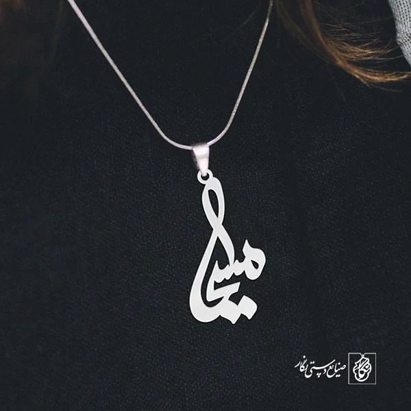گردنبند اسم مسیحا کد 3295 از جنس استیل ضدزنگ و ضد حساسیت با رنگ ثابت توسط زیورآلات نگار طراحی و ساخته شده است. این گردنبند با ضخامت 1 میلیمتر در ابعاد 2.5 تا 4 سانتیمتر نسبت به سفارش مشتری قابل ساخت است. تمام محصولات در فروشگاه زیورآلات نگار بعد از خرید ساخته خواهد شد و بین 7 تا 15 روز به دست مشتریان گرامی خواهد رسید.