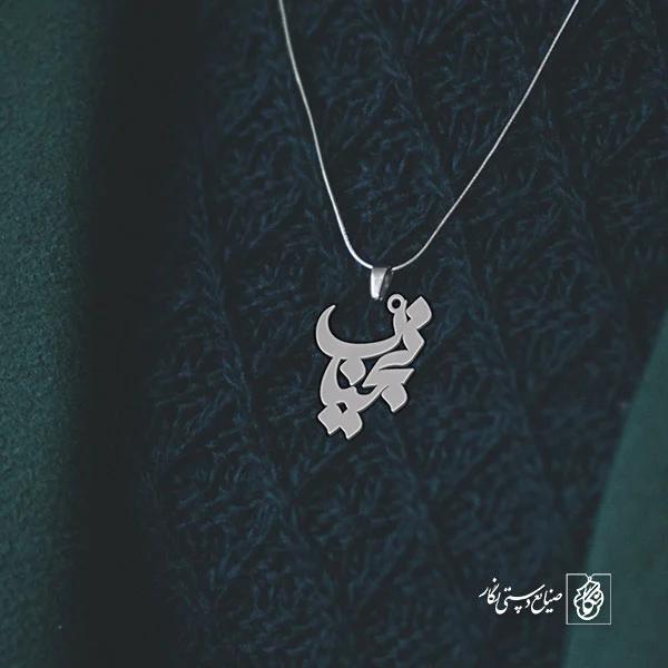 گردنبند اسم نجیب کد 3380 از جنس استیل ضدزنگ و ضد حساسیت با رنگ ثابت توسط زیورآلات نگار طراحی و ساخته شده است. این گردنبند با ضخامت 1 میلیمتر در ابعاد 2.5 تا 4 سانتیمتر نسبت به سفارش مشتری قابل ساخت است. تمام محصولات در فروشگاه زیورآلات نگار بعد از خرید ساخته خواهد شد و بین 7 تا 15 روز به دست مشتریان گرامی خواهد رسید.