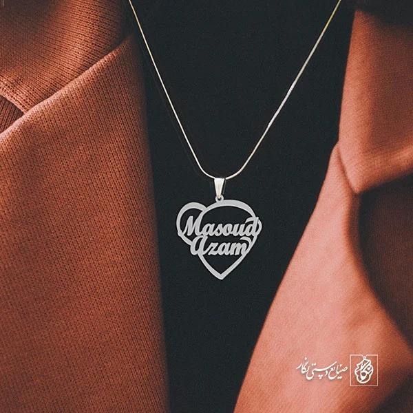 گردنبند اسم Masoud Azam کد 10076 از جنس استیل ضدزنگ  و ضد حساسیت با رنگ ثابت توسط زیورآلات نگار طراحی و ساخته شده است. این گردنبند با ضخامت 1 میلیمتر در ابعاد 2.5 تا 4 سانتیمتر نسبت به سفارش مشتری قابل ساخت است. تمام محصولات در فروشگاه زیورآلات نگار بعد از خرید ساخته خواهد شد و بین 7 تا 15 روز به دست مشتریان گرامی خواهد رسید.