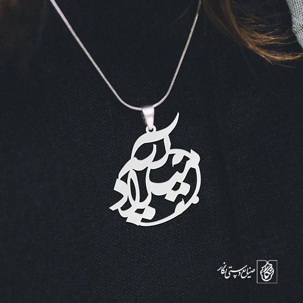 گردنبند اسم میلاد آیه کد 10084 از جنس استیل ضدزنگ و ضد حساسیت با رنگ ثابت توسط زیورآلات نگار طراحی و ساخته شده است. این گردنبند با ضخامت 1 میلیمتر در ابعاد 2.5 تا 4 سانتیمتر نسبت به سفارش مشتری قابل ساخت است. تمام محصولات در فروشگاه زیورآلات نگار بعد از خرید ساخته خواهد شد و بین 7 تا 15 روز به دست مشتریان گرامی خواهد رسید.