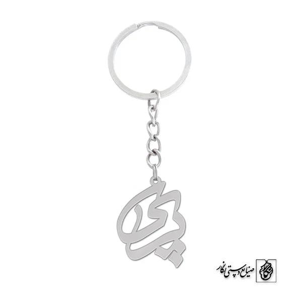 جاکلیدی پری کد 1008 از جنس استیل ضدزنگ و ضد حساسیت با رنگ ثابت توسط زیورآلات نگار طراحی و ساخته شده است. این گردنبند با ضخامت 1 میلیمتر در ابعاد 2.5 تا 4 سانتیمتر نسبت به سفارش مشتری قابل ساخت است.
