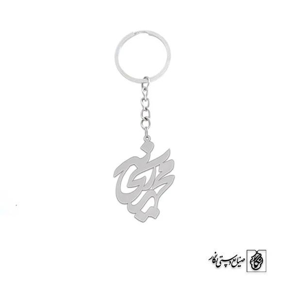 جاکلیدی محمد ریحانه کد 10091 از جنس استیل ضدزنگ و ضد حساسیت با رنگ ثابت توسط زیورآلات نگار طراحی و ساخته شده است. این گردنبند با ضخامت 1 میلیمتر در ابعاد 2.5 تا 4 سانتیمتر نسبت به سفارش مشتری قابل ساخت است.